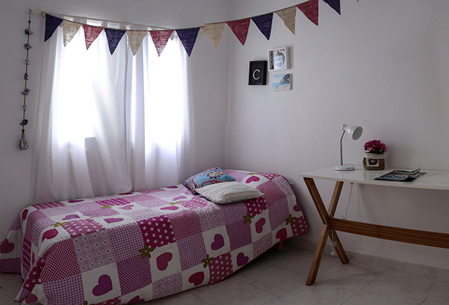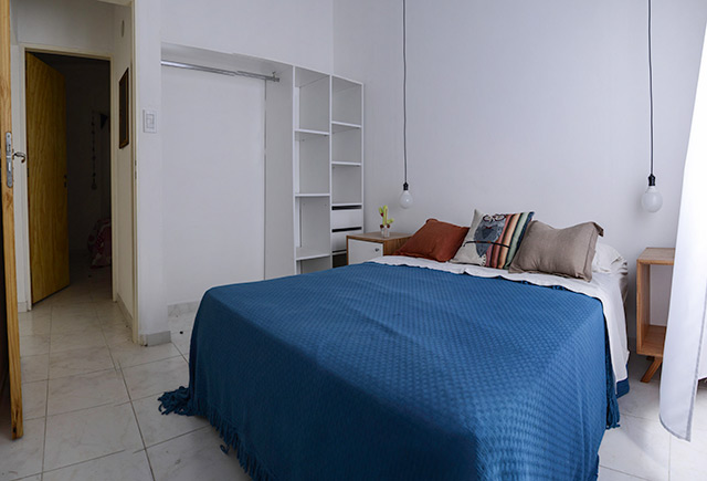 Las aberturas exteriores están fabricadas en aluminio blanco, mientras que las puertas interiores de los dormitorios y el baño son de madera de pino.